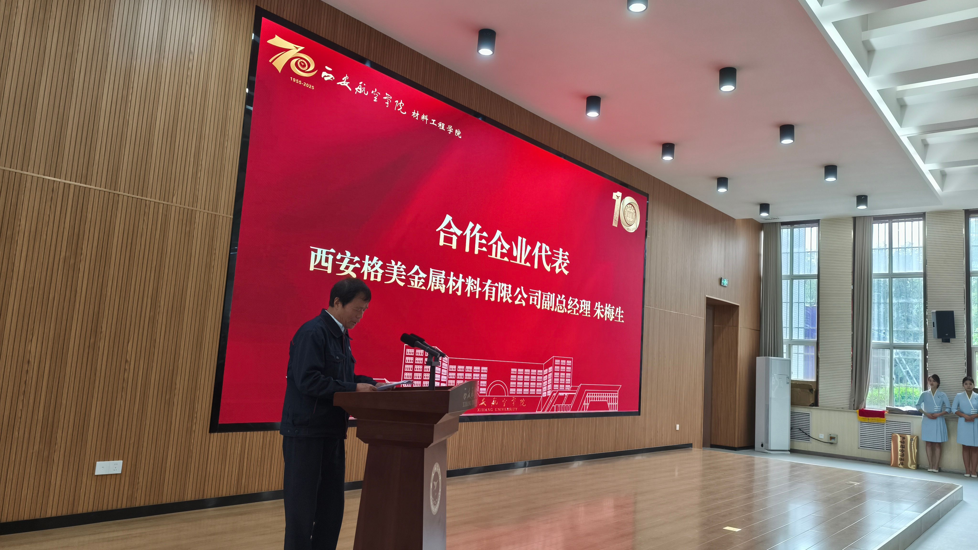 最后,副校长许文丹发表讲话,对材料工程学院十年来的办学成就给予高度肯定,并对学院未来发展提出了三点期望:第一,聚焦立德树人根本任务,在人才培养质量上达到新高度;第二,聚焦学科建设核心任务,在争取硕士点上实现新突破;第三,聚焦服务国家发展大局,在产教融合上迈出新步伐。勉励全院师生以十年院庆为新的起点,继往开来,为学校高质量发展和航空强国建设做出更大贡献。