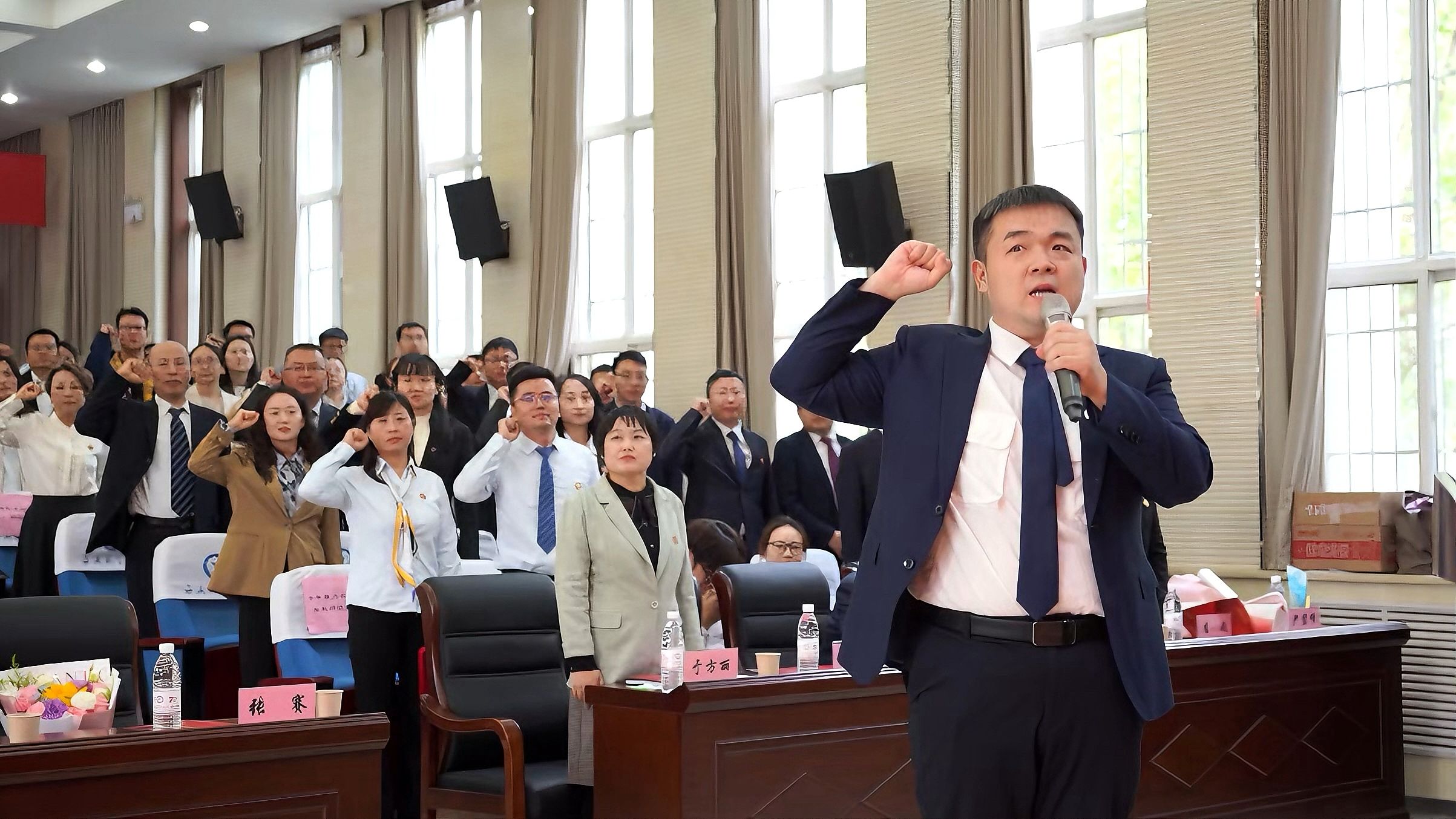 在副院长李兆的带领下,学院教进行了“审核评估与硕士点建设工作宣誓”,表达了全力以赴夺取审核评估优异战绩、实现硕士点突破的坚定决心与必胜信念,将整场大会的气氛推向高潮。