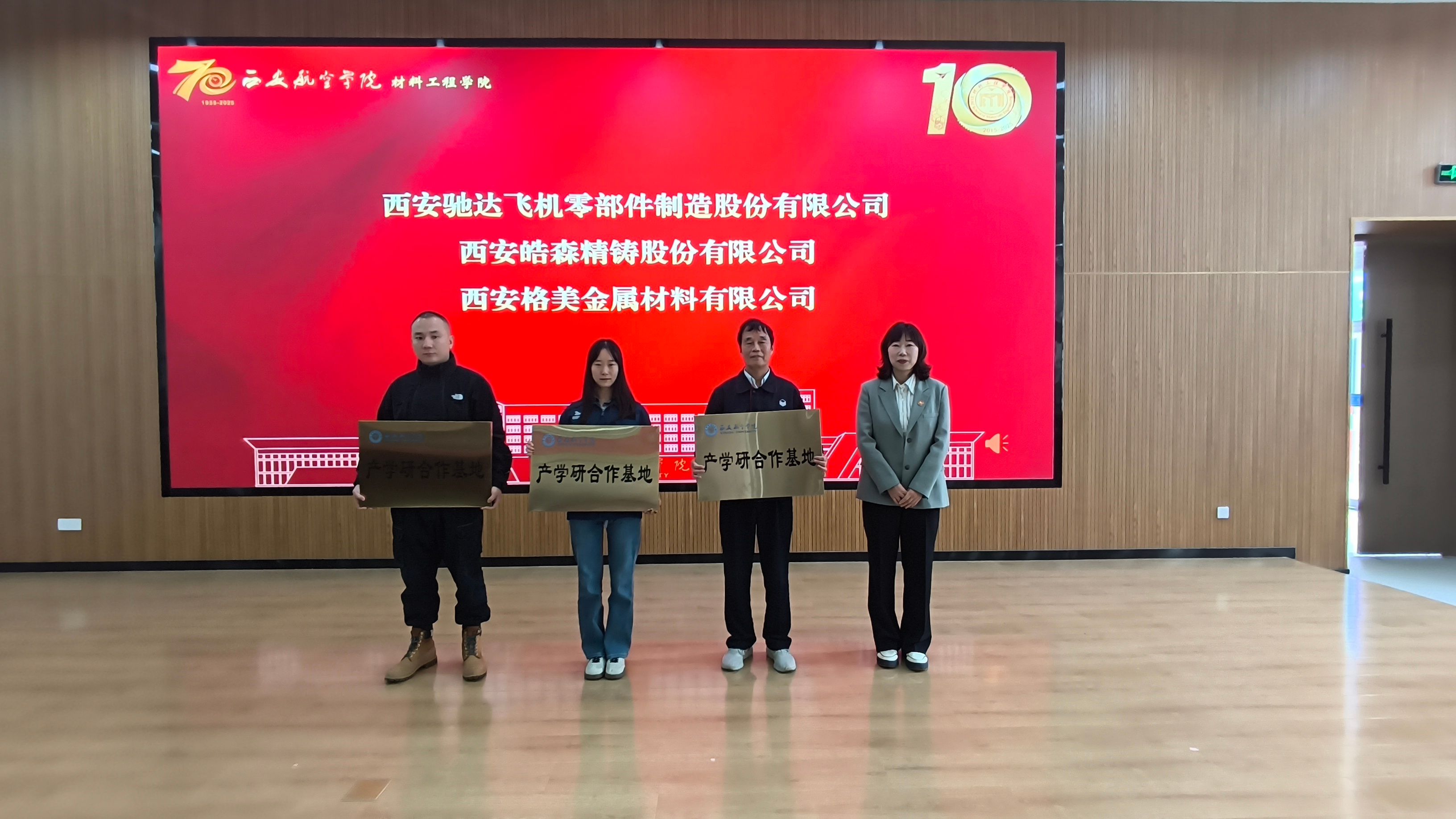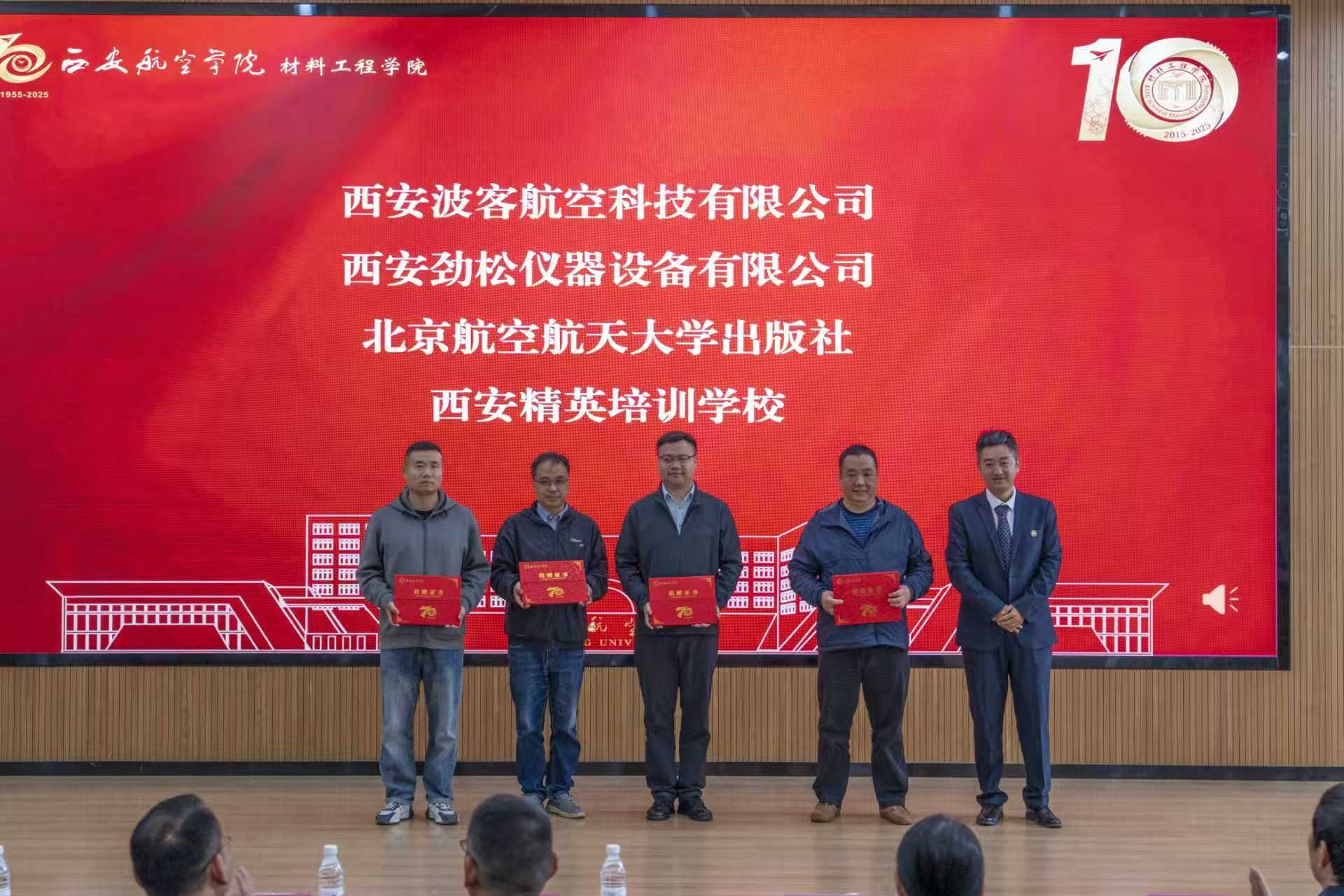 深化产教融合、服务航空产业是学院一贯的办学特色。学院为陕西思诺智造科技有限公司等校庆捐赠单位颁发了证书,为西安驰达飞机零部件制造股份有限公司等五家优秀合作企业进行了“产学研合作基地”授牌,并聘请了多位优秀校友担任“校友导师”,初步构建起“企业-校友-学校”协同发展共同体,为应用型人才培养和科技成果转化拓展了更广阔的平台。