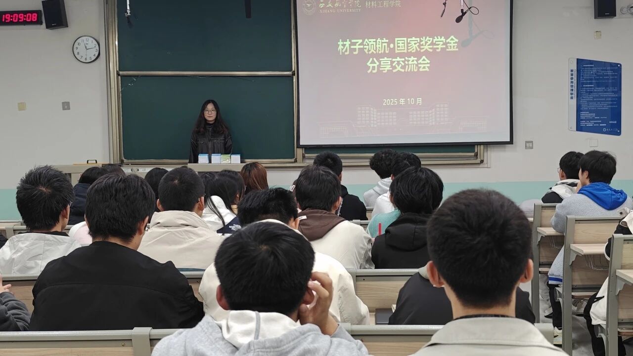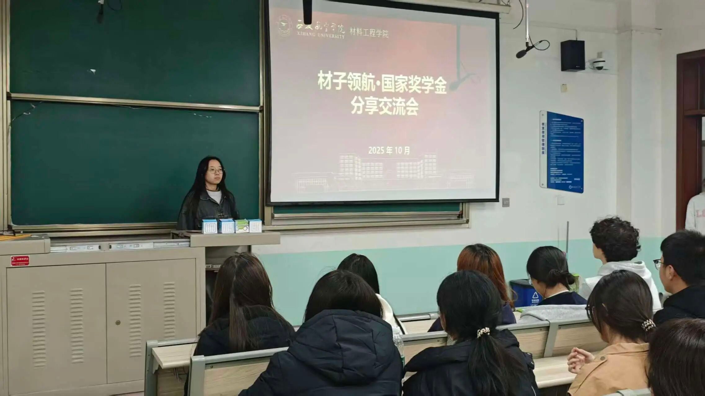 为了助力新生更快适应大学学习节奏,10月29日,我院“才子领航 ——国家奖学金获得者分享交流会”在阎科楼358教室顺利举行,国奖获得者材成241魏紫倩、复材231蔡利、材科222徐露瑶三位同学,以自身经历为切入点,为25级新生带来了关于在校学习、获奖心得的分享。
