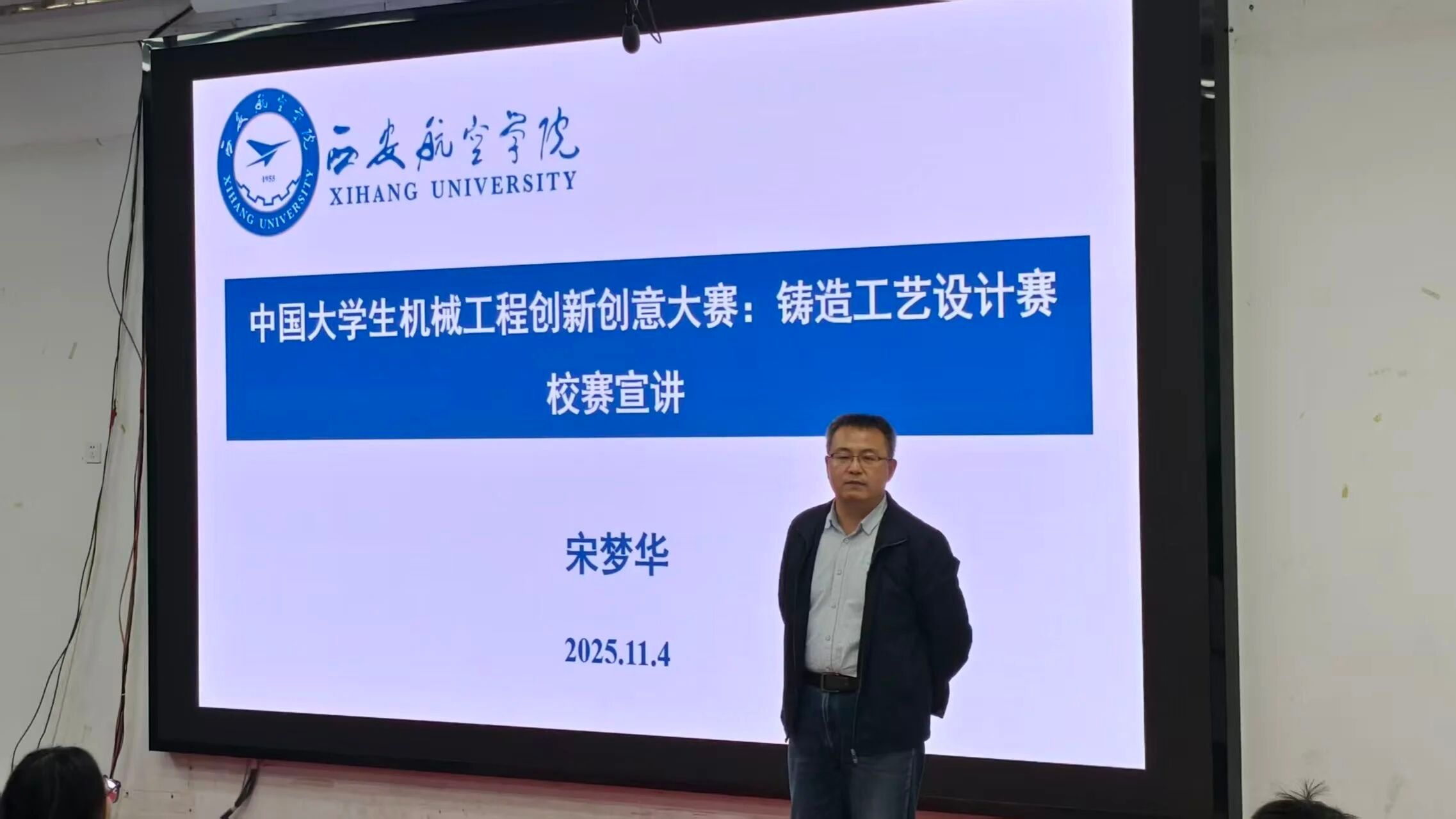 为助力学生深入了解赛事规则、提升铸造工艺设计能力,11月4日,我院在阶梯二教室举办了中国大学生机械工程创意创新大赛铸造工艺设计赛校赛宣讲会,宋梦华老师担任主讲,为各级学生全面解读赛事要点。