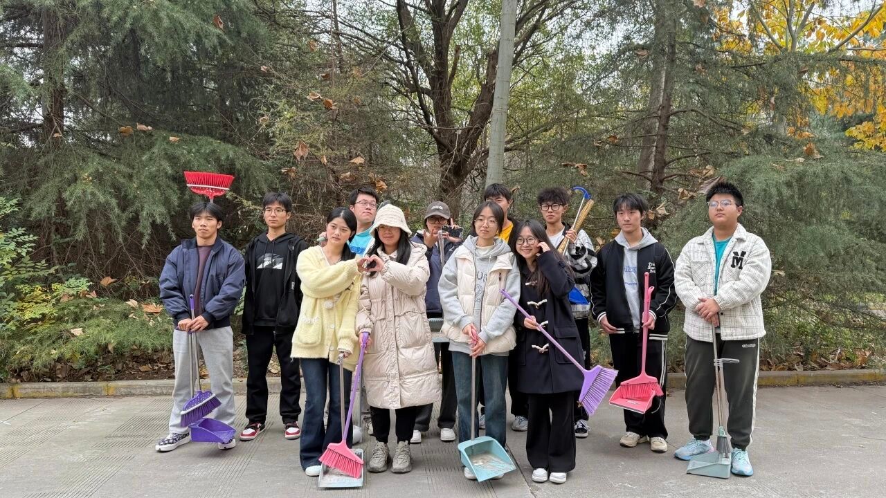 经过近两小时清理,图书馆旁道路、教学楼周边步道的零星落叶和杂物已全部清理完毕。路面看不到零散落叶,原本略显杂乱的区域变得清爽干净,与秋日校园的景致相得益彰。